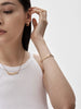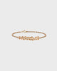 Koristeosaa muodostavat pienet mattapintaiset silmut. Pitsimäinen rakenne on ilmava, mutta tuntuu napakalta käytössä. Säädät pituuden juuri sopivaksi ja koru istuu kauniisti yksin tai muiden rannekorujen kanssa.