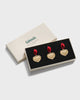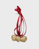 Kolmen koristeen setti materiaalina kullanhohtoinen pronssi, joka heijastaa kynttilän ja takkatulen valoa kauniisti. Ripustusnauhat on valmistettu kierrätetyistä PET-pulloista.