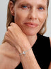 Sterlinghopeinen kehys on koristeltu tähtikuvioisilla koloilla, jotka luovat kauniin kontrastin helmiäisen kanssa. Kuun alla riippuu Pohjantähti, jonka keskellä kimaltaa yksi briljanttihiottu cubic zirconia -kivi täydellisine väriheijastuksineen.