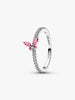Tuo hienovaraista kimallusta tyyliisi tällä upealla perhosrenkaalla. Tämä ajaton Sterling-hopeinen sormus on koristeltu vaaleanpunaisilla ja kirkkaan läpinäkyvillä cubic zirconia -kivillä, jotka luovat kauniin, monitahoisen kimalteen.