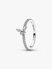 Tämä upea hopeinen sormus on täydellinen valinta, kun haluat tuoda asuusi ripauksen eleganssia ja symboliikkaa. Kirkkailla cubic zirconia -kivillä koristeltu perhonen on asetettu kulmaan, edustaen muutosta ja kauneutta.