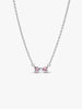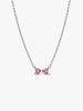 Tämä upea hopeinen kaulakoru yhdistää elegantin muotoilun ja romanttisen yksityiskohdan. Kaksi vaaleanpunaista sydämenmuotoista kiveä muodostavat kauniin rusetin, joka on kiinnitetty ketjuun luoden ainutlaatuisen kokonaisuuden.