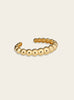Pallomainen muotokieli leikittelee valolla ja varjolla luoden dynaamisen pinnan, joka elää käden liikkeiden mukana. Lämmin keltakulta-sävy tuo ylellisen hohteen ja tekee rannekkeesta näyttävän yksityiskohdan.